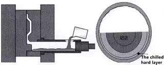 The chilled hard layer refers to the shell formed by the rapid condensation of the Al liquid injected into the barrel and the low temperature surface of the barrel (the spectrometer checks chemical composition of the chilled hard layer and no abnormalities are found, all within the standard allowable range). The shell is filled into the cavity along with Al liquid at a high speed. The density of the solid chilled hard layer is 2.7g/cm², which is greater than that of the liquid Al. The liquid Al has a density of 2.45g/cm². During the low speed operation stage of the punch, the chilled hard layer slowly gathers at the end of the Al liquid. When the punch is running at high speeds, parts of the chilled hard layer will be cased in the cavity and form defects. They will become the chilled hard layer remaining in the gate finally. The chilled hard layer mostly has the shape of thin slices, and is shiny and hard. Moreover, there are many gaps between the chilled hard layer and surrounding base material, which not only affects the appearance, but also reduces strength of aluminum alloy die castings.