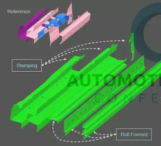 The updated Audi e-tron uses 6 series of aluminum alloys to make the top cover and front and rear side beams, and the 7 series of aluminum alloys are adopted by the hot forming process to make the top cover's side beams. While applying lightweight materials, the structural design is optimized and the design parts are integrated. The A-pillar, roof reinforcement plate and crossbeam joint are integrated into an aluminum alloy hot-formed part, and the design of the front reinforcement crossbeam is modified to reduce the intermediate reinforcement. In the end, 6 parts were reduced; the weight was reduced by 28.3 kg, and the weight reduction ratio was as high as 41.8%.