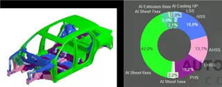 The body is mainly made from steel-aluminum. Among them, the amount of traditional mild steel is 2%, high-impact steel, advanced high-impact steel, ultra-high-impact steel and hot-formed steel 47.5% and aluminum alloy as high as 50.4%.