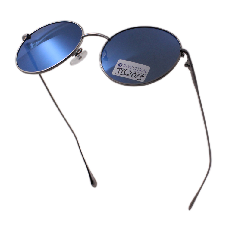 Classic Retro Polarized UV400 Round With Blue Mirror Lens Metal Sunglasses