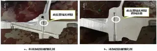 Figure 4 The effect of Al-Ti-B refining agent on the internal shrinkage of die castings before and after adding Al-Ti-B refining agents