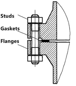 As shown in the Figure 1-1, the bolted flange is composed of flanges, gaskets, bolts and nuts. The hardness of the gasket should generally be lower than that of the flange. The gasket is compressed by the compression force of the bolt and is deformed so as to fill the uneven gap on the flange's pressing surface, thereby preventing the leakage of fluid to achieve the purpose of sealing.