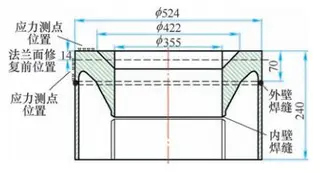 The pipe end's flange surface mentioned in this article was a part of the low-pressure safety injection pump. The safety level is RCC-P2 and the manufacturing level is RCC-M2. Its structure is similar to the butt welding neck flange, and has two inner and outer welding ends. The flange material is Z2CN18.10. According to the design drawings and on-site corrosion conditions, the pipe end's flange simulation parts were made, as shown in Figure 2.