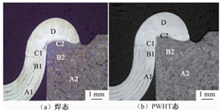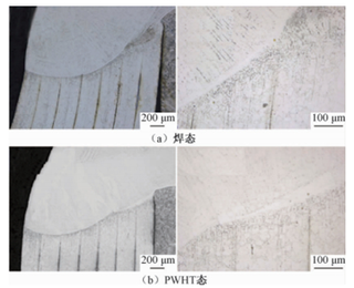 Figure 3 The welding seam's interface of the welded joint in the as-welded and PWHT state