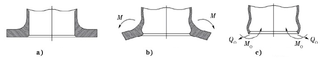 a) Not bearing force  b) Rotating due to bearing force  c) Deformation