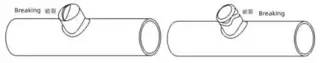 (2) In the early or middle stage of forming, the supporting punch is separated from the top of the branch pipe and does not play a supporting role due to insufficient axial feed, too high internal pressure, or too fast retreat of the punch supporting the branch pipe in the forming process. It is easy to crack the top of the branch pipe due to excessive thinning, as shown in Figure 2. The cracking is the product of the combined action of feeding and internal pressure, so qualified parts can only be formed by using a reasonable matching of internal pressure and axial feeding.