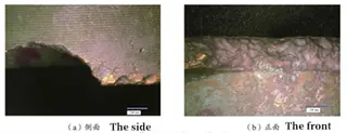 It can be seen from Figure 2 that most of the outer surfaces of the globe valve disc were turquoise; the sealing surface of the valve disc is corroded and the thinned area is gray as a whole, with metallic luster in part. The arc length of the thinned area is about 120mm, accounting for about 30% of the outer circumference of the disc sealing surface, and the maximum corrosion depth of the sealing surface is about 4 to 5mm. A KEYENCE VHX-600E microscope was used to observe the macroscopic morphology of the corroded parts of the valve disc, and the morphology is shown in Figure 5. On the side of the valve disc corrosion area, it can be found that the maximum corrosion depth is about 4.5mm, and there are many corrosion pits of different sizes on the outer surface of the valve disc sealing surface. Obvious metallic luster can be observed in the corrosion pit, and it can be speculated that corrosion may preferentially occur from the outer surface of the valve disc sealing surface. The specific morphology is shown in Figure 5(a). Observed the front of the corroded part of the valve disc, and there were metallic lusters in partial areas, which are uncorroded and missing raised parts. Most of the concave area is blue-gray. There are pits of different sizes at the bottom. The bottom of the pit is relatively smooth, and purple-red can be observed partially. The specific morphology is shown in Figure 5 (b).