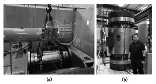 In the test, it was found that when the flange with a spiral wound gasket sealing structure is adopted (Figure 2a); the top cylinder type compress can assist with the sealing of the middle flange. It did not leak for the first test. After the axial force is not applied, the screws of middle flanges will loosen; the flange will leak when tested again.