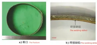 Use wire cutting to cut off the valve tube at the fractured part, as shown in Figure 2a. It can be seen that the cut valve tube has poor roundness and the tube body is deformed. The fracture was observed under a stereo microscope, as shown in Figure 2b. The color of the fracture near the inner wall of the valve tube is significantly different from that of the outer wall. The fracture near the inner wall of the valve tube is yellow-brown, which should be a welding defect; the fracture near the outer wall of the valve tube is silver-gray with a metallic luster, and has the characteristics of a shear lip, which should be a fresh fracture surface. It is preliminarily judged that the valve tube of the stainless steel 304 check valve has welding defects, which reduces the strength of the welded joint of the valve body; the valve tube deforms under medium stress and finally breaks.