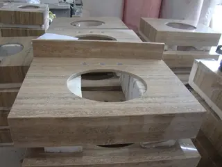 Package: Tops padded with carton box and packed in fumigated wooden crates, reinforced with plastic straps outside. Carton packing per set of vanity top including: 1pc 4 backsplash and 1pc side-splash & under-mount sink hardware. |
