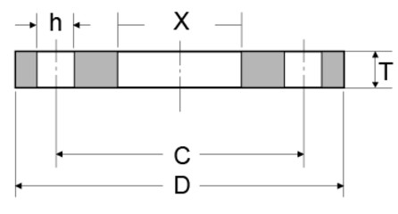 X | C | D | T | h | Thread | Bolt holes | KG | ||
