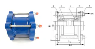 After universal coupling is installed on the pipeline, it tightens the elastic seal ring of the nut, and under the action of the nut cover, it tightens the seal and connection of the outer ring of the pipe by means of a mutual slope.
