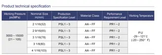 Working Pressure: 3000-15000 PSI, 21-105 MPa