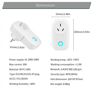 4. Wifi connection: Plugin a wall outlet, easily follow instruction steps to connect your smart plug to your existing 2.4GHz Wi-Fi network. Then start using your smart app or voice to turn to control the power