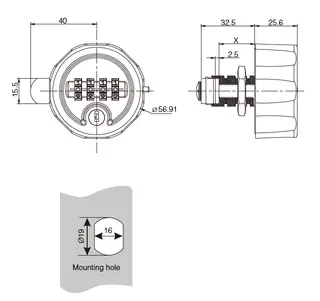 ● Easy operate: Easy to install on standard 16*19mm mounting hole and operate by code.