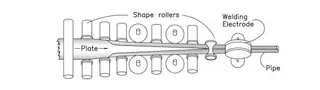 Butt-welded pipe is formed by feeding a hot steel plate through shapers that will roll it into a hollow circular shape. Forcibly squeezing the two ends of the plate together will produce a fused joint or seam. Figure 2.2 shows the steel plate as it begins the process of forming butt-welded pipe.