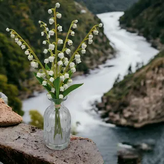 Product Name | 35CM Artificial White Lily of the Valley 5 Branches in Fake Water with Glass Vase |