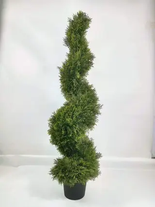 Product Description: Our Spiral Topiary Artificial Cypress Tree is a perfect addition to any space that needs a touch of greenery. Made with high-quality materials, this tree looks and feels like the real thing. The spiral design adds a unique and elegant touch to any room or outdoor space. No need to worry about watering or maintenance, this tree will always look perfect.