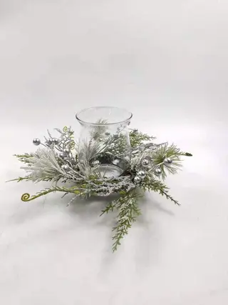 Product Name: Winter Theme Fern Plant Silk Berries LED Candle Base