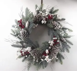 inter Wreath Pine Cones Berries Decoration Wreath Manufacturer in China: Decoration Wreath, for Christmas, Holiday, City, Town, Village, Metropolis, Courtyards, Supermarkets, Golf Course, Indoor or Outdoor, Gym.