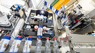 No machine has ever managed this before: The Sleevematic sleeves up to 50,000 containers per hour with just one labeling station! What's its secret? It uses a completely new cutting method. Unlike other machines, the Sleevematic cuts the sleeves in an ongoing movement and not in cycles with a stop-and-go operation.