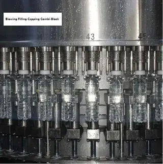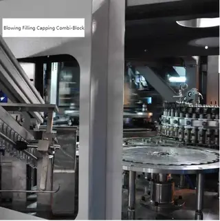 This combi block consists of a blowing unit, filling unit, and capping unit. With the synthetic application of electricity, mechanics, and pneumatics, and synchro controlled by a servo system, Combi is applicable for the integrated control of several types of equipment and the whole production process.
