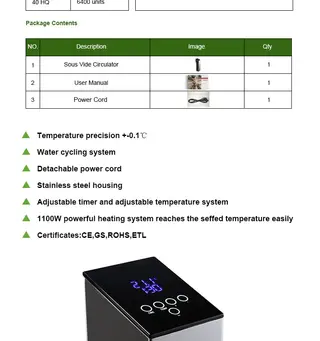 Keywords: sous vide cooker, sous vide circulator, water cycling system.