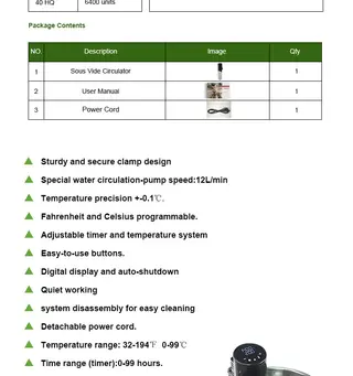 Keywords: sous vide cooker, sous vide circulator, water cycling system.