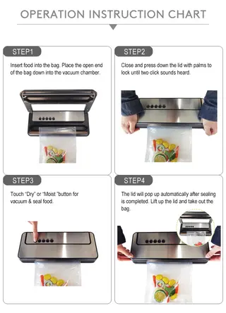 -Separate vacuum mode for dry and moist food.
