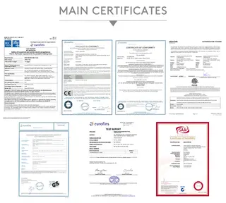 Certifications: CE, GS, RoHS, SAA, ETL.