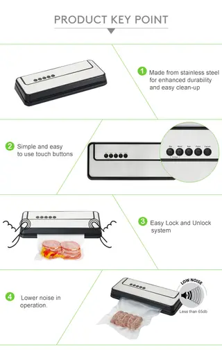 b)Keywords: vacuum sealer, vacuum food sealer, vacuum machine, home vacuum sealer, household vacuum sealer for food preservation and storage.